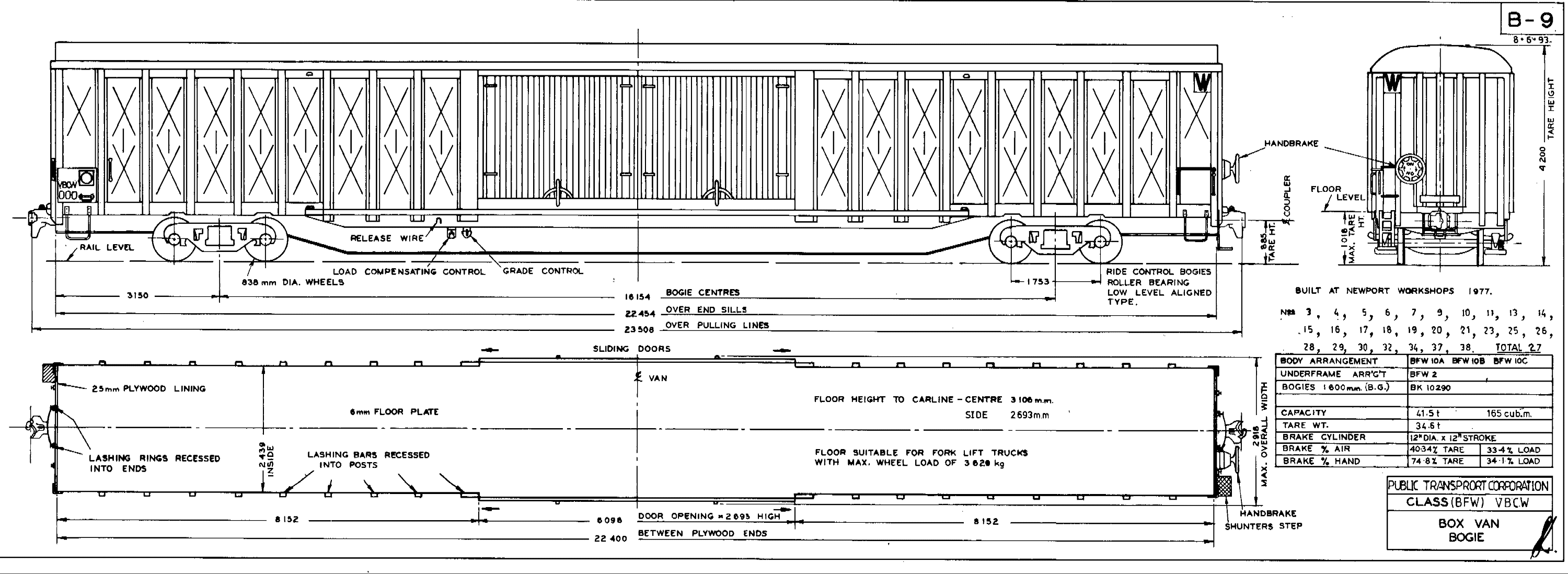 Forty of these enormous (for the VR) boxvans were built at Newport workshops in 1977 to haul car parts (panels) from Ford Australia's plant at Geelong to its assembly plant near Upfield. The train was a dedicated, daily train. In 1979 the class was recoded VBCW.