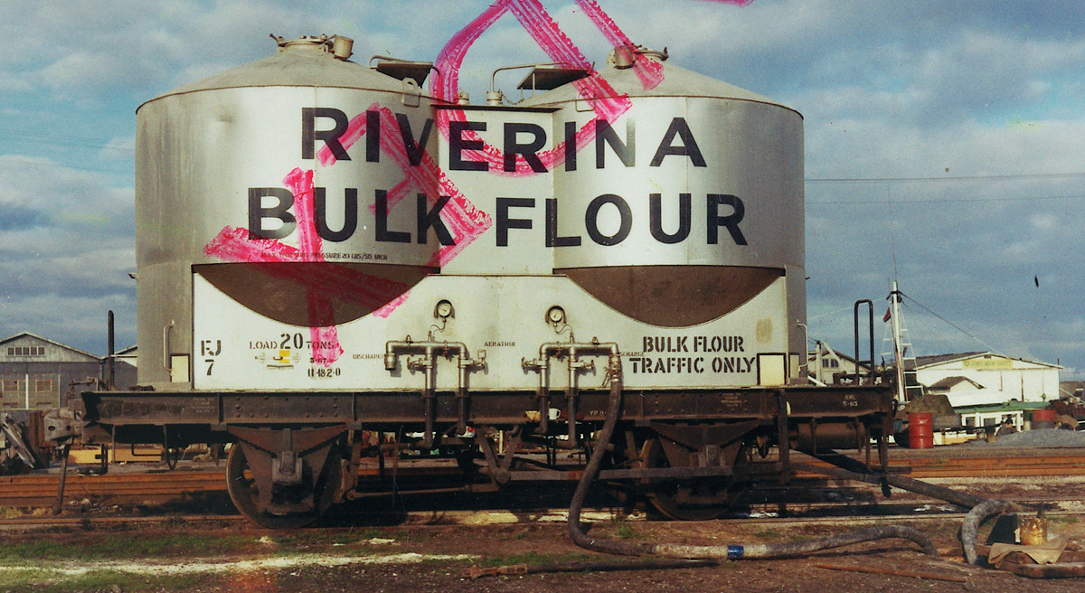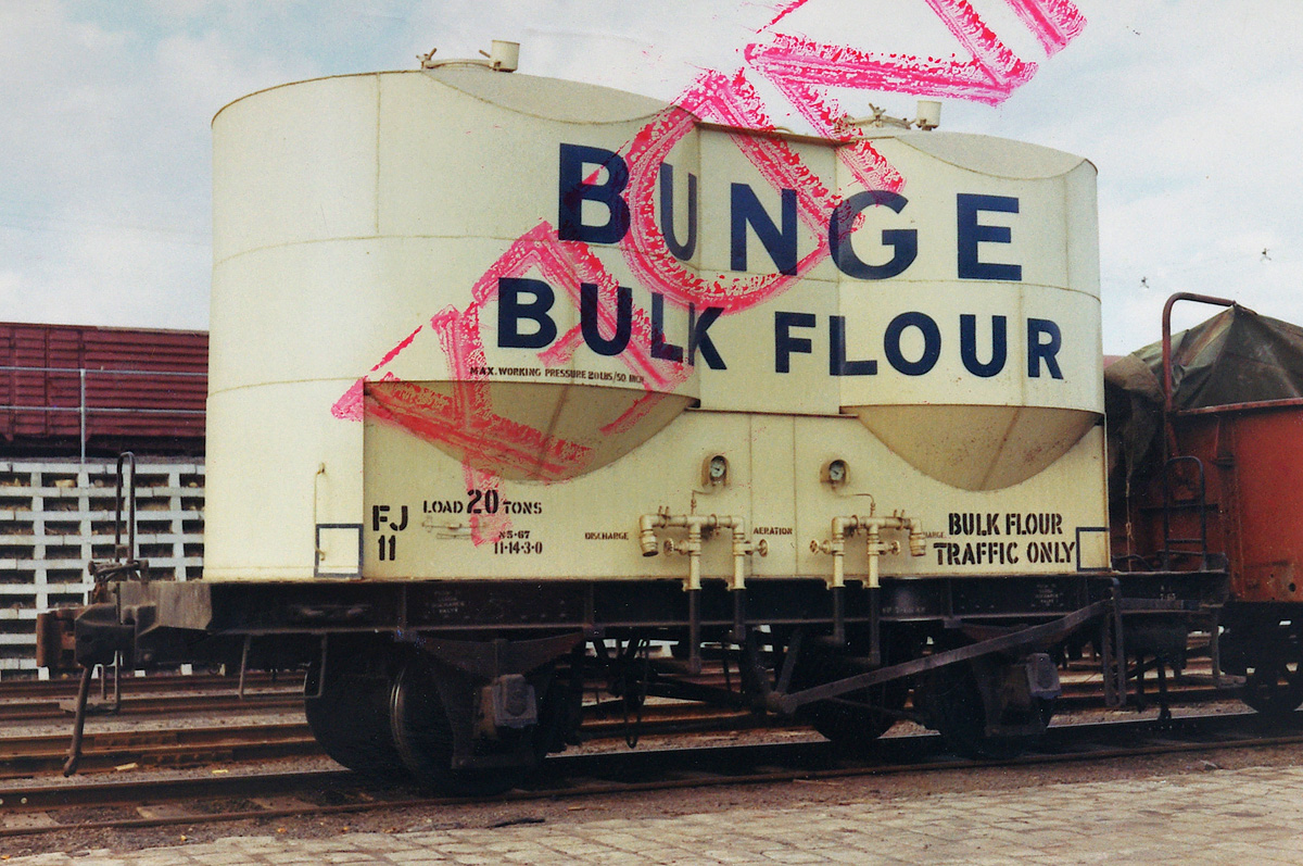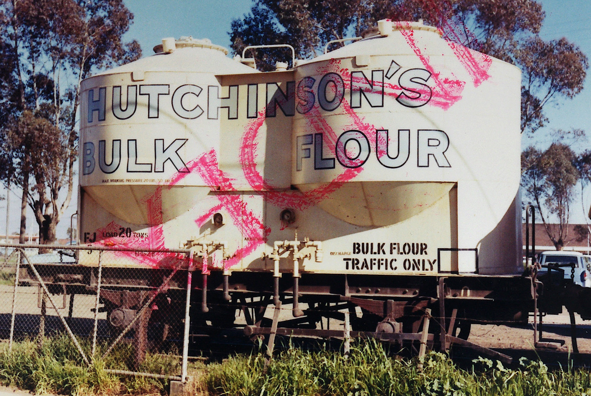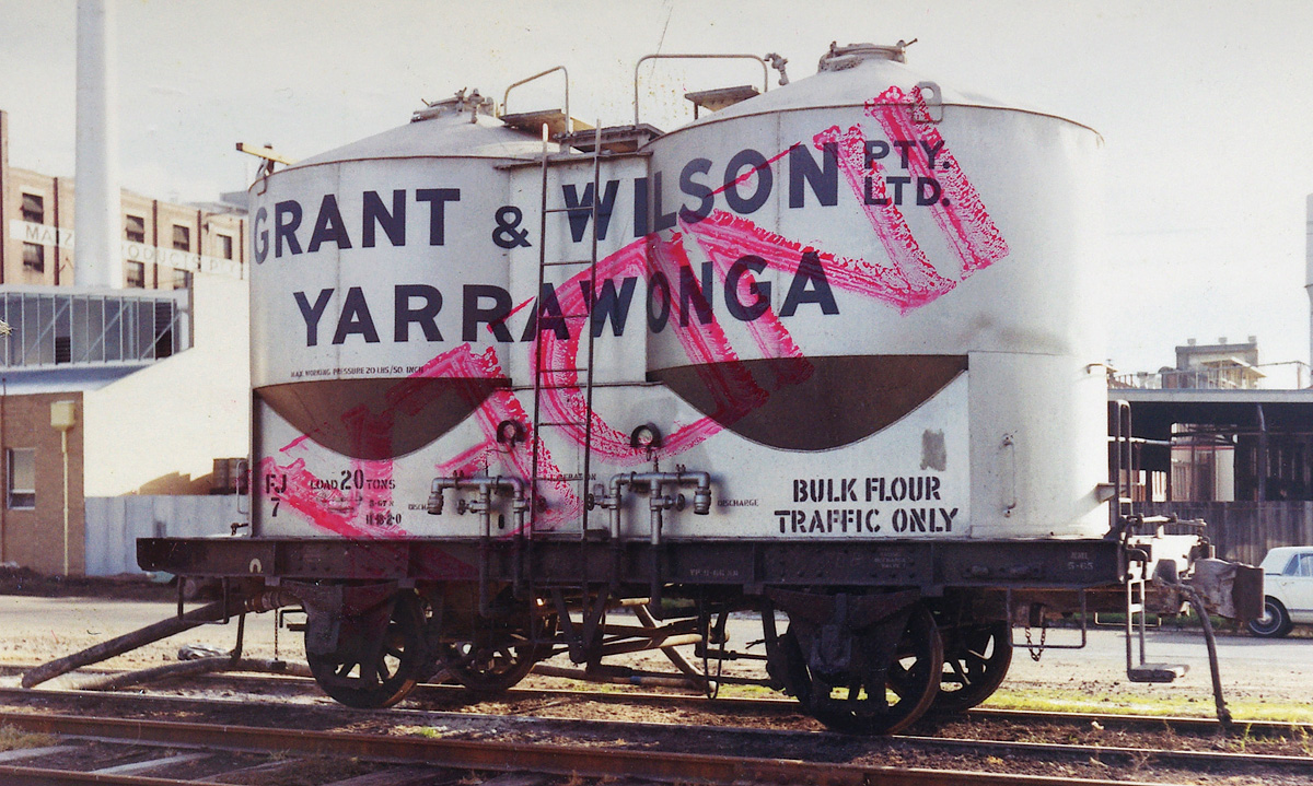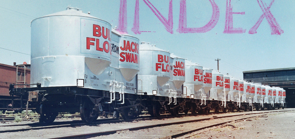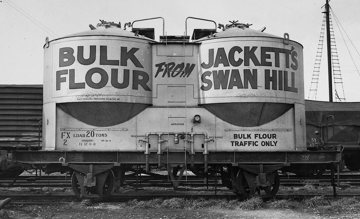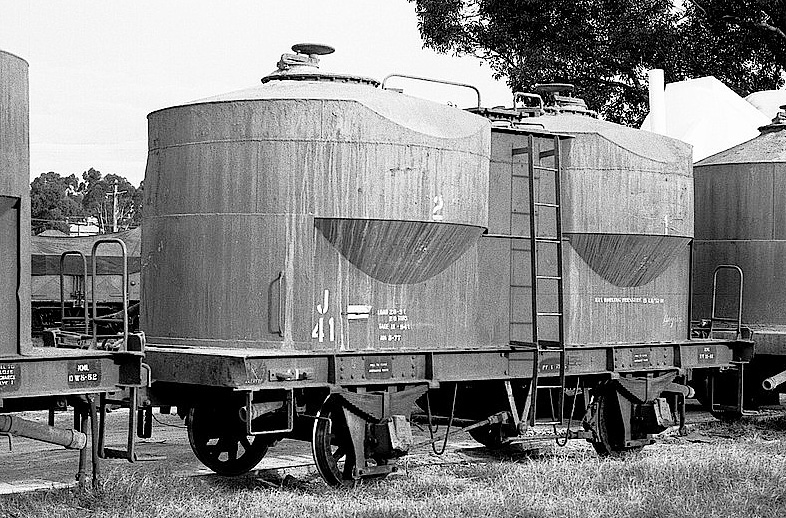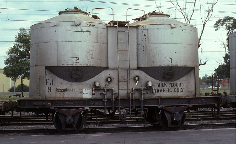 The FJ's trace their origins back to the pulverised brown coal CK wagons. A timeline of their conversions can be found on the J wagon page. By the late 70's only 2 FJ's (8 & 9) remained in service. FJ's needed a supply of compressed air in order to discharge their contents. I only saw them at Westall, they were loaded at Albury. |