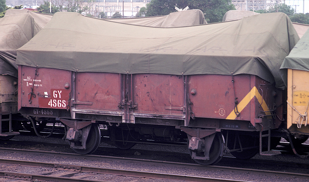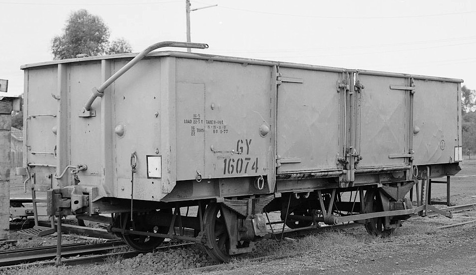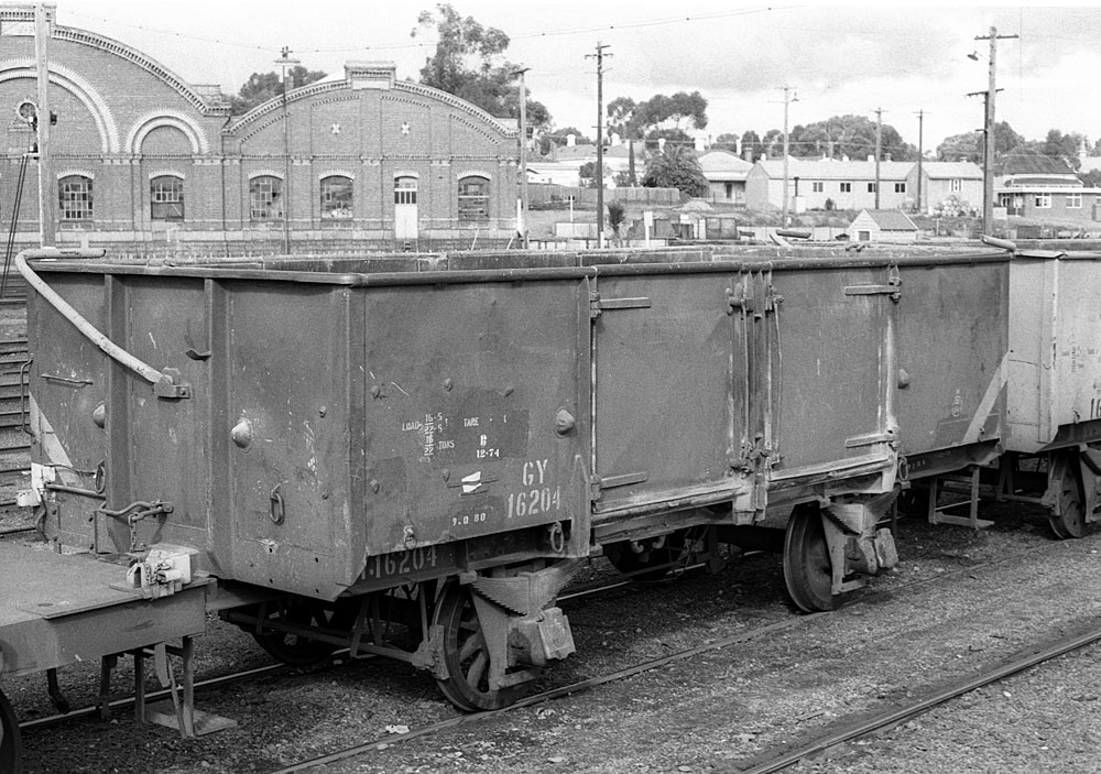 ABOVE: GY 16204 (ex HY 16204) at Bendigo, 1978. Still in red, 8 years after the program to paint GY's yellow began. This wagon has a spoked and a disc wheel which was quite common.