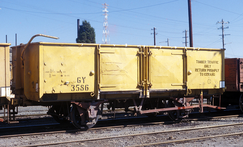 ABOVE: GY 6130 was one of a group of 20 wagons purchased by the VR from Australia Paper Mills in 1956. APM had them built by A. E. Goodwin to the standard VR design. (VR also had GY's built by A. E. Goodwin) photo taken in 1979 by Peter J. Vincent.