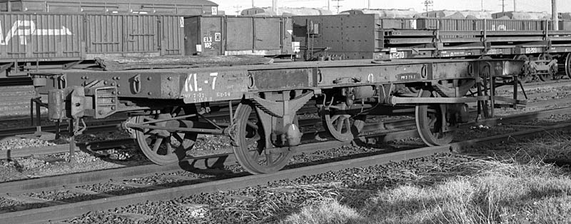 Most container use involves unloading the container from the wagon before unloading the contents of the container. In the early days of container use on the VR most locations were not equipped to physically take the container off the wagon so the container had to be unloaded as it sat on the wagon. With the introduction of KQ's it was impossible to load/unload the container as it sat on the KQ so the KL's were designed to be coupled to a KQ destined for a loaction without unloading facilities. Exactly how the KL assisted in unloading is unknown. A forklift could be used but that would require some sort of plate/ramp to bridge the gap between the KL and KQ and no evidence exists of such a ramp. Maybe the container was hand unloaded, perhaps with a road truck backed onto the KL.The only KL's I saw from 1977 on were in storage so I presume revenue use ceased before 1977. | |||||||||||||