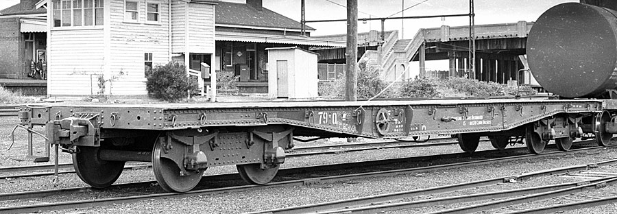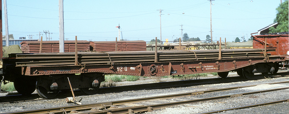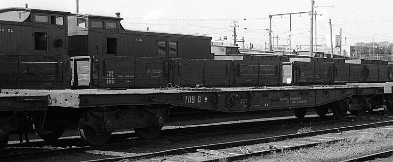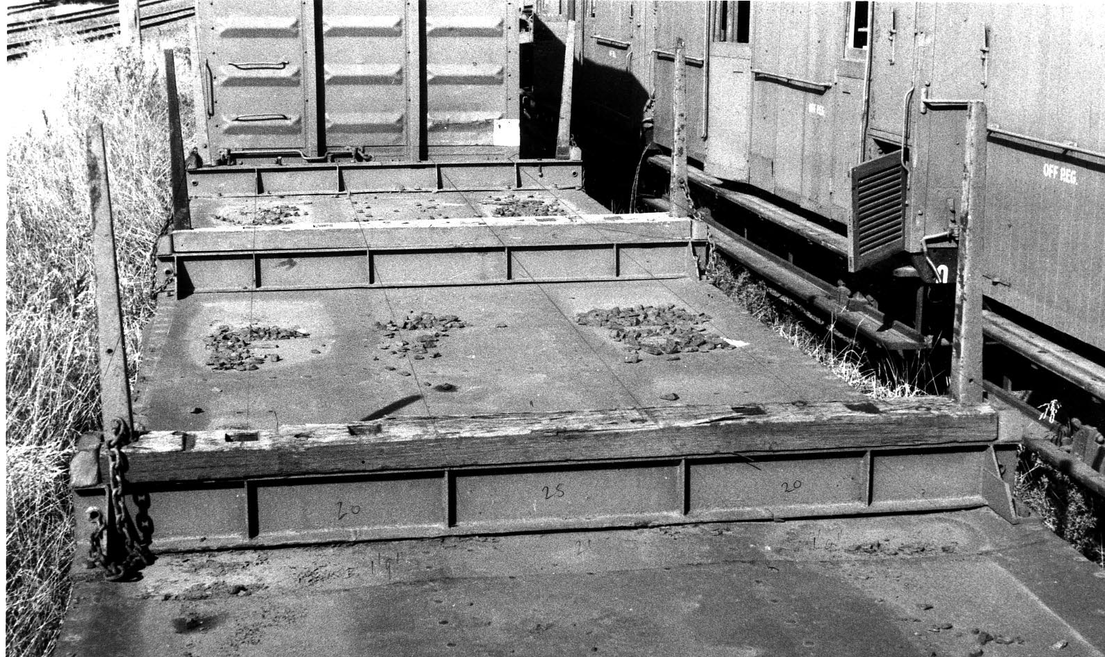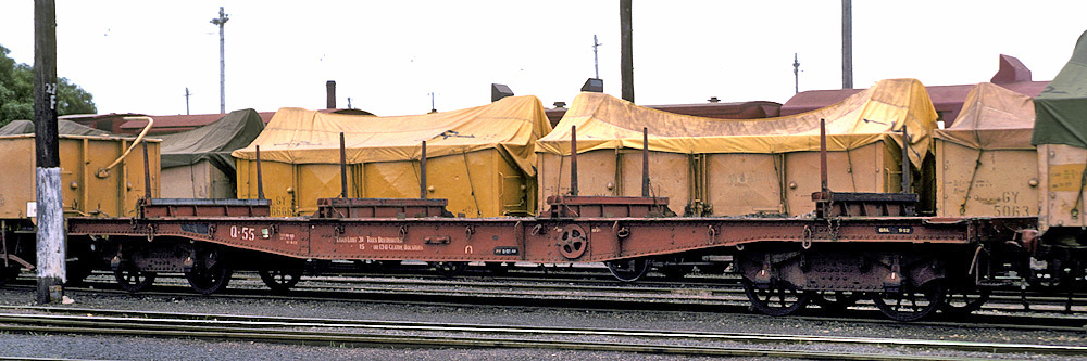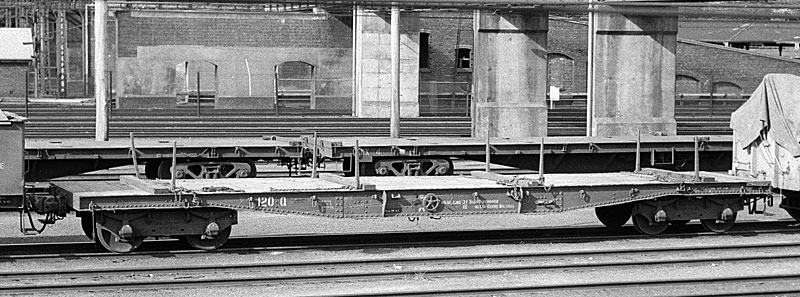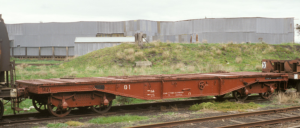 This page describes the "modern" Q's, there were earlier types most of which were scrapped by the turn of the century. A general purpose flat wagon, over the years they hauled almost every concievable load from poles, to circus wagons, army tanks, bridge girders, bagged wheat, even a house! Q 1 was shorter than the rest of the class and featured a wooden deck. For a short time 1955 - 1962 the 4 QH's (ex S class steam tender underframes) were coded Q with numbers 132 - 135. Q 129 was unique, it was built to transport narrow gauge locomotives. There were also some oddball Q's that will be covered later. |