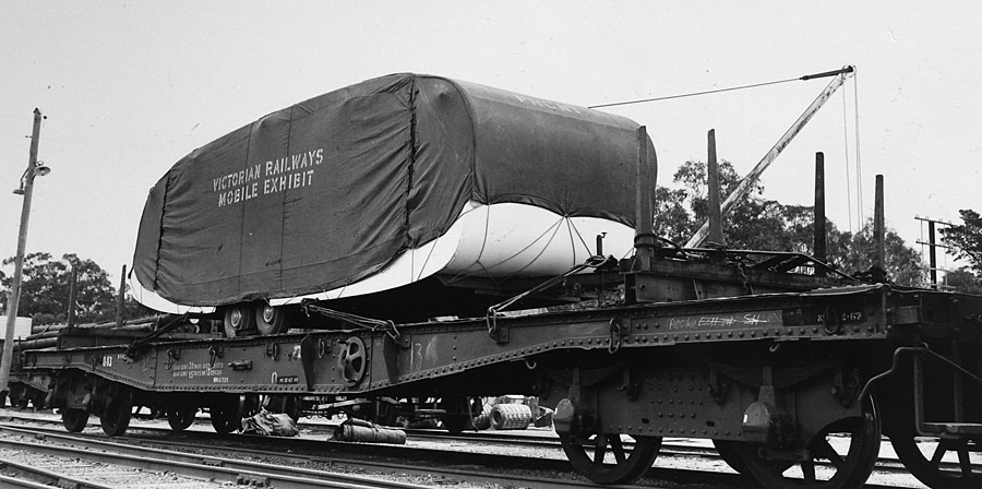 ABOVE: Q 19 was built 1878, fittted with Westinghouse air brake in 1911. This photo may be circa 1925 in service on the Better Farming Train. It was scrapped in 1943. Not many wooden underframes were eqipped with air brakes. photo courtesy SLV.