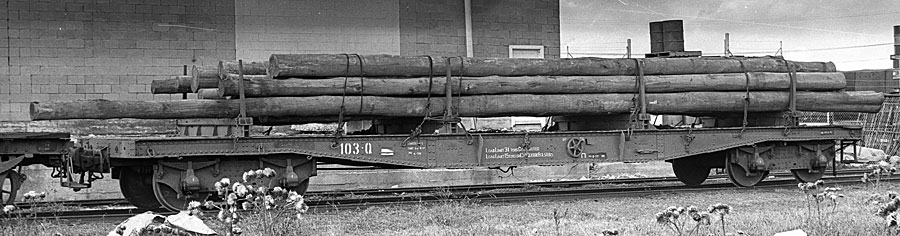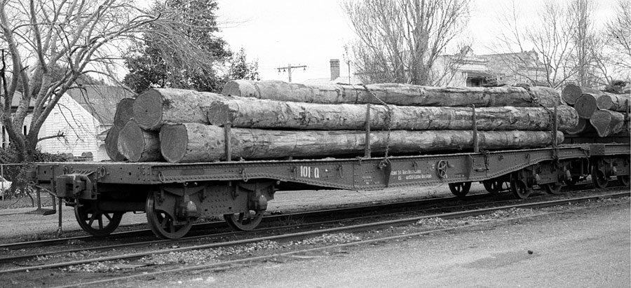 ABOVE: Q, QR with its sides and ends removed, and another Q loaded with a large bridge beam, June 1929. (photo by Wilfred Disney Chapman)