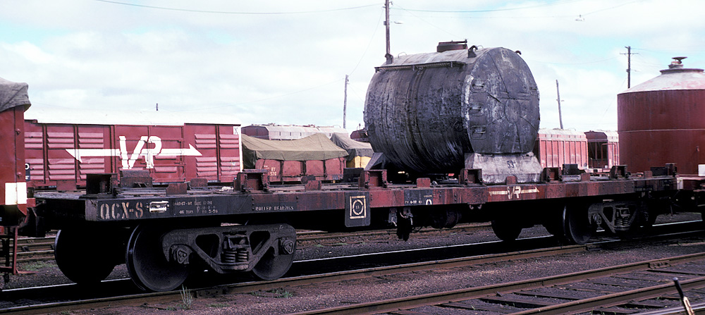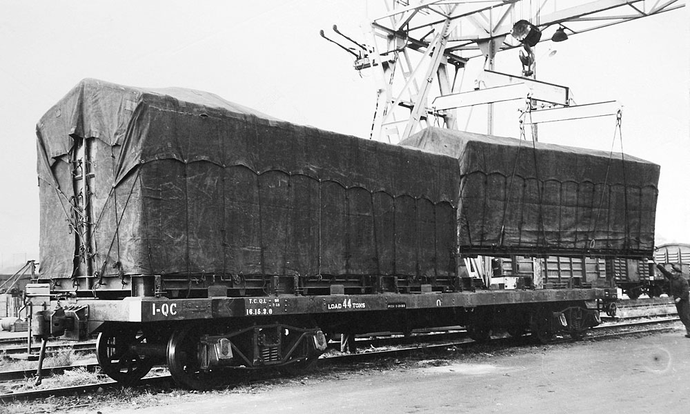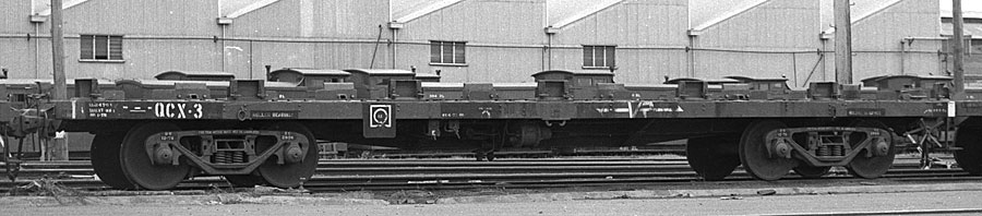 Built as the QC class in 1959 from E wagon underframes, in 1961 they were classed as QCF after being fitted with roller bearings. In 1965 they were again re-classed as QCX to enable them to enter bogie exchange traffic. When their LCL (Less than Car Load) traffic finished in 1978 they were converted to departmental use and classed HR | |||||||||||||||