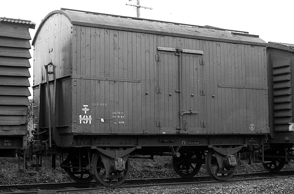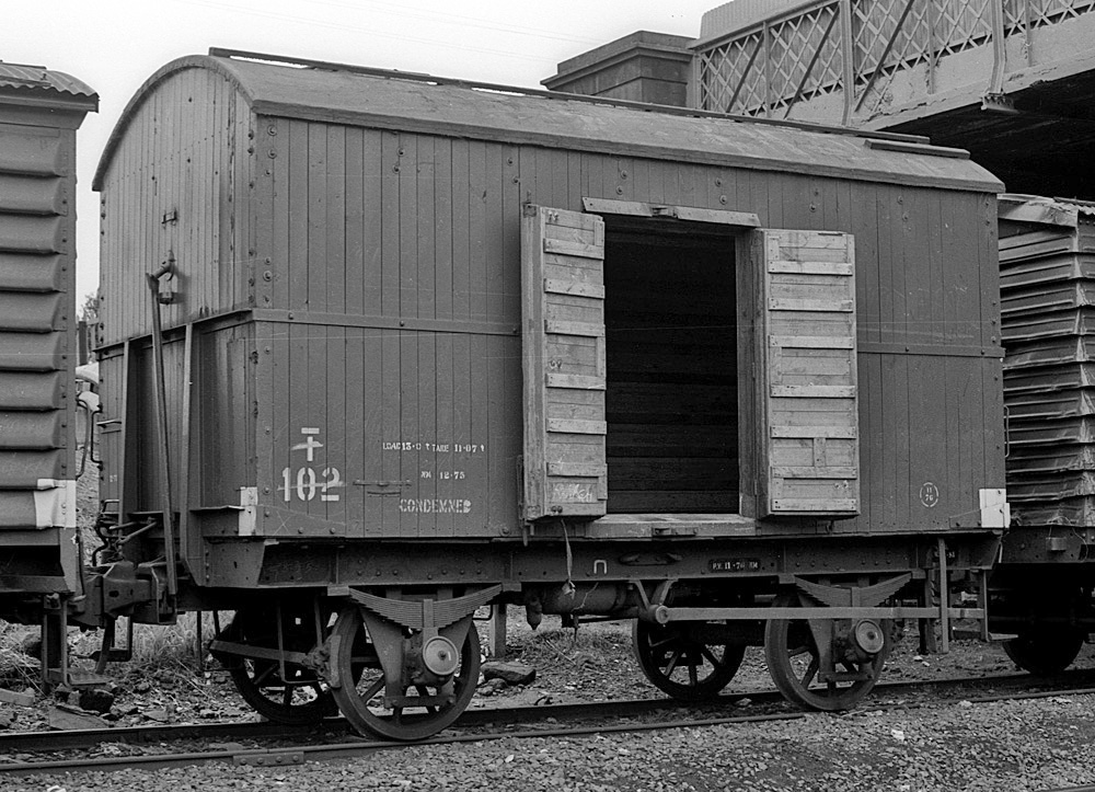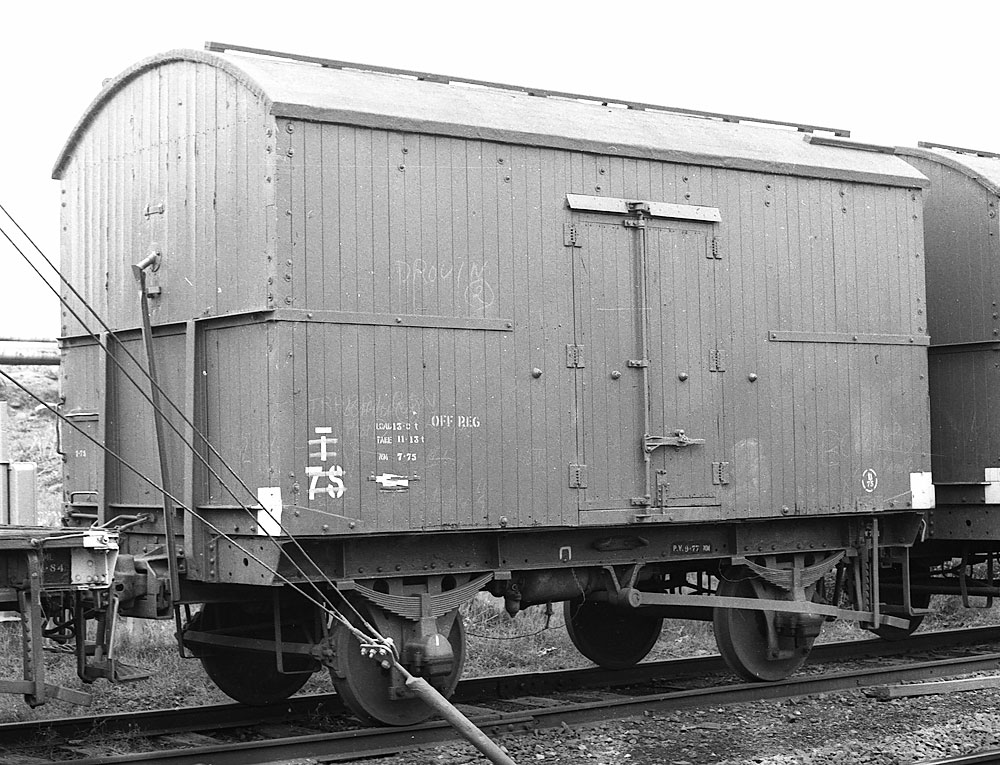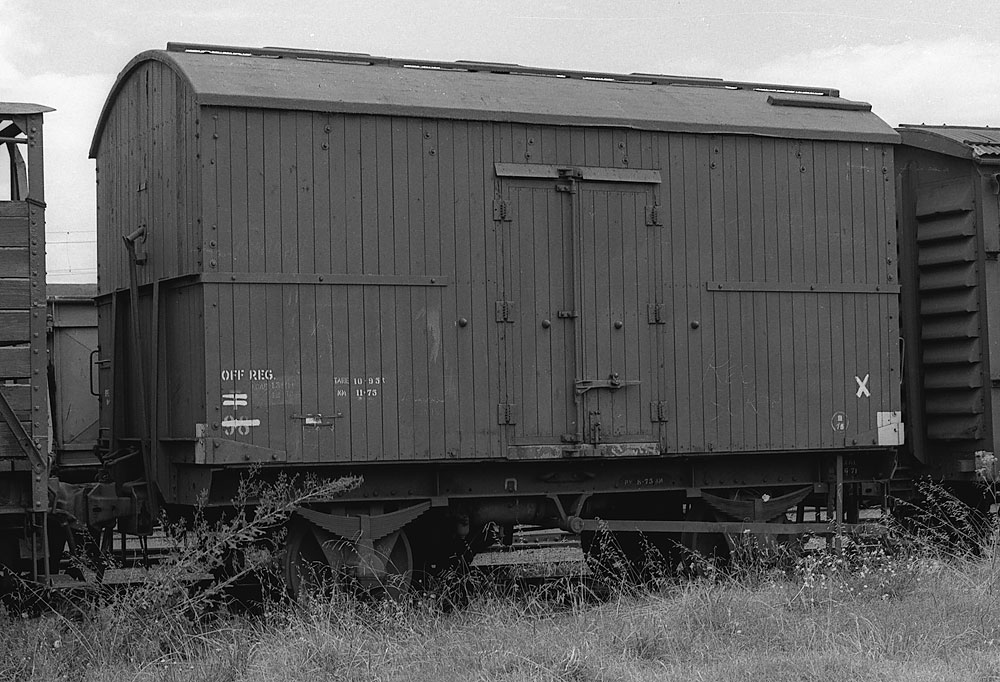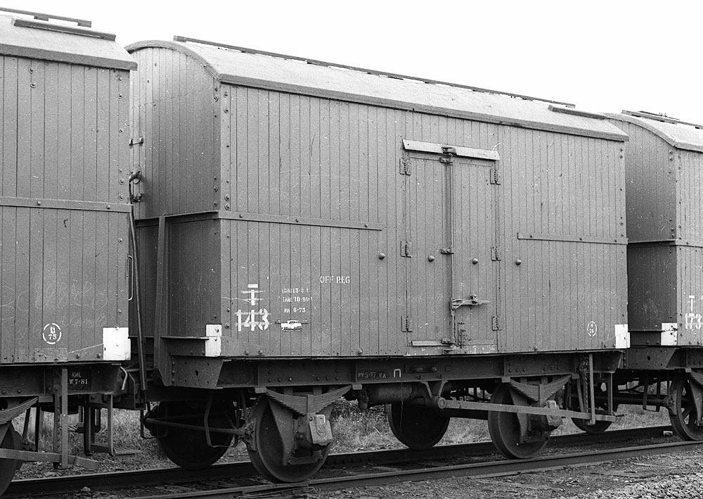 The T's had a ice bunker running along the middle of the ceiling that was filled with ice from hatches in the roof. They were used to transport meat carcasses or other goods that required a cool temperture. Their walls were between 4 and 6 inches thick for insulation. The vertical channel at the end was a drain for the ice bunker. All T's in this number group had lever type handbrakes. This series of T vans had a 12 ton capacity. Truly a relic from a bygone age they lasted to the late 70's in "refrigerated" service.