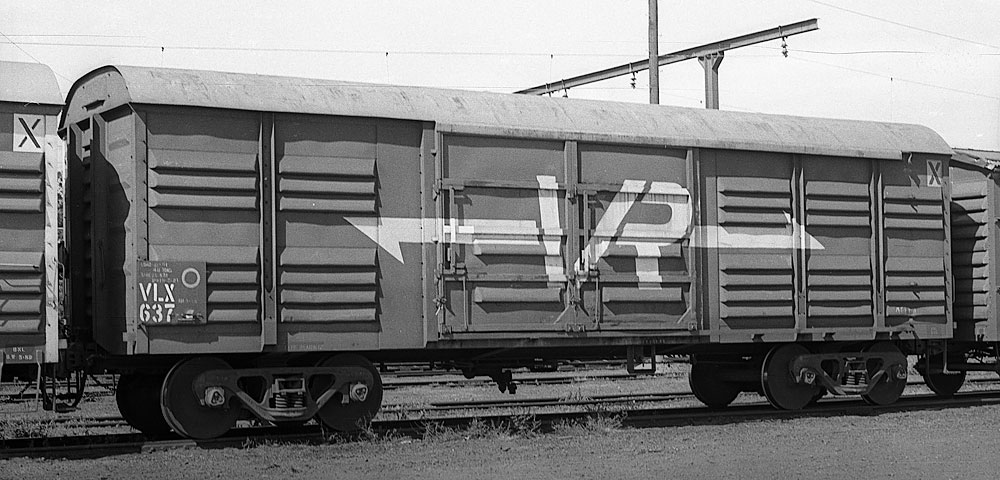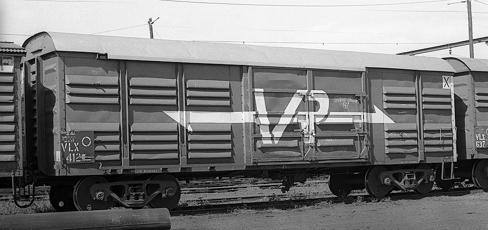 The VLX's became the standard VR bogie louvre van by their sheer numbers. A common sight on any interstate freight they saw wide service over the entire system. For such a big class there were not many variations, main ones included different doors and different ends. Diagram V5 shows the group of VLX's fitted with load compansating/grade control equipment. Most VLX only had grade control equipment. |