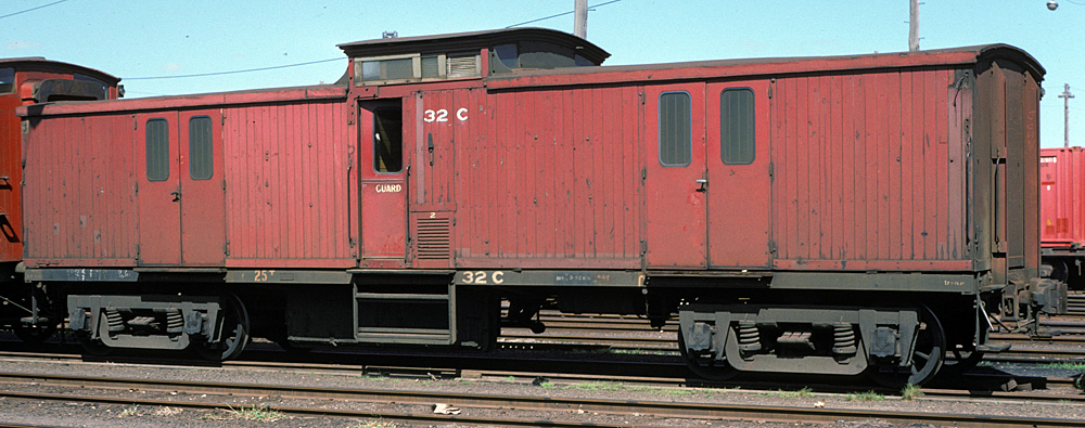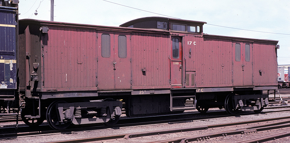 Built as "Dd" class they were coded to "C" circa 1910. By the late 1970's the only C's left were numbers 14 onwards. They were an extremely long lived van, in passenger service their whole life. In the mid 1950's they recieved new underframes and the "TT" style bogies shown in these photos, they were also auto coupled at this time. Like the Z vans they had their centre cupola windows blanked out as a cost saving measure. As explained in the diagram, some C's had centre doorway connections that were later removed. Towards the end of their lives they were relegated to shorter distance passenger trains, they were also a common sight behind DERM railmotors. Vehicle History List |
