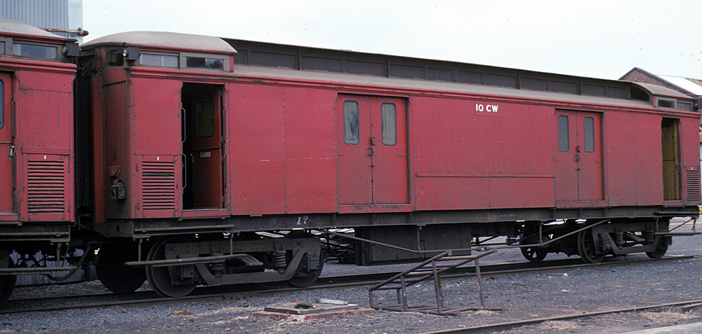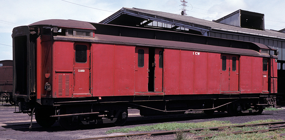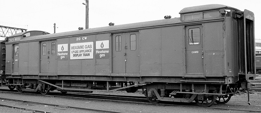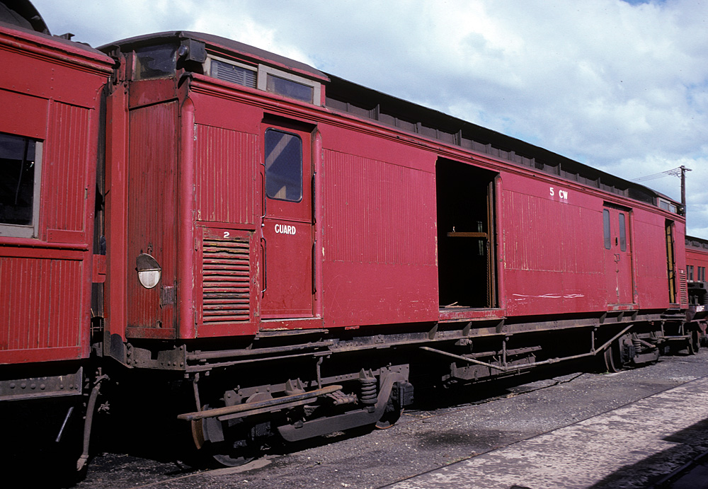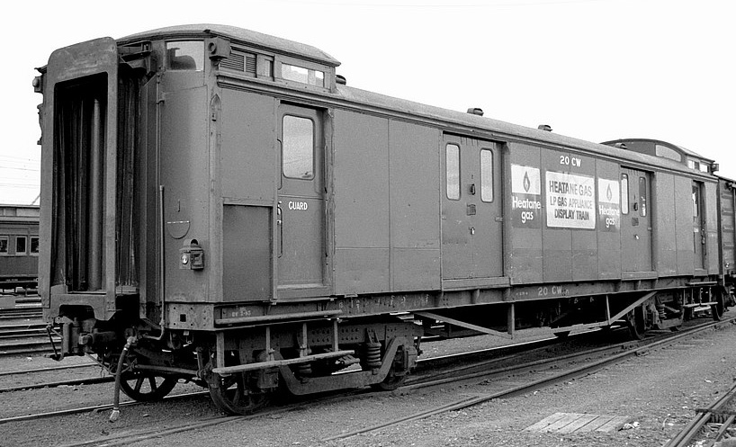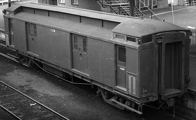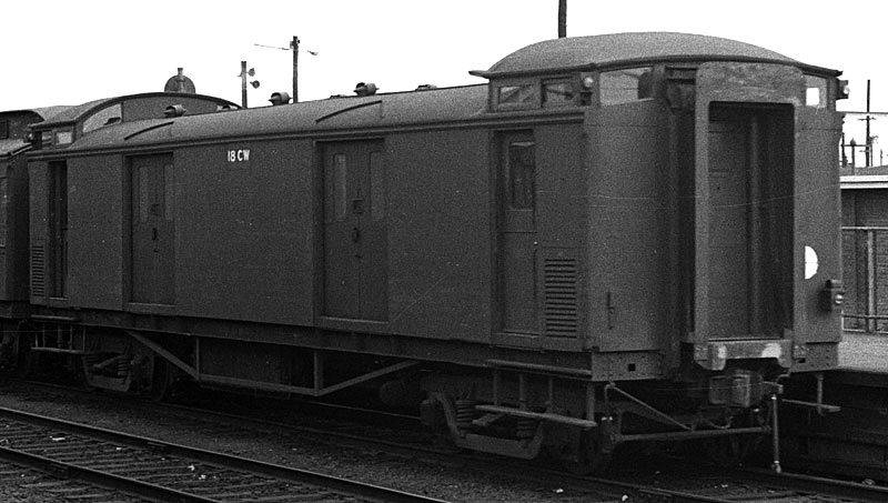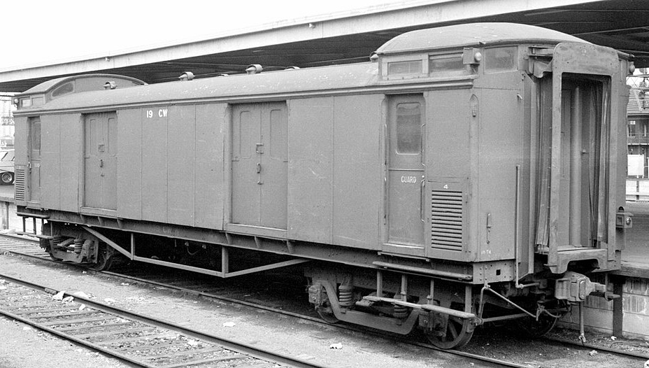Built alongside the W class cars (AW, BW, ABW) they were in general passenger guards van service all their lives although by the late 70's they rarely were seen on longer distance trains. Most had their wood sides replaced by sheet steel. Numbers 1 - 15 had celestory roofs, numbers 16 - 20 had plain curved roofs.  |