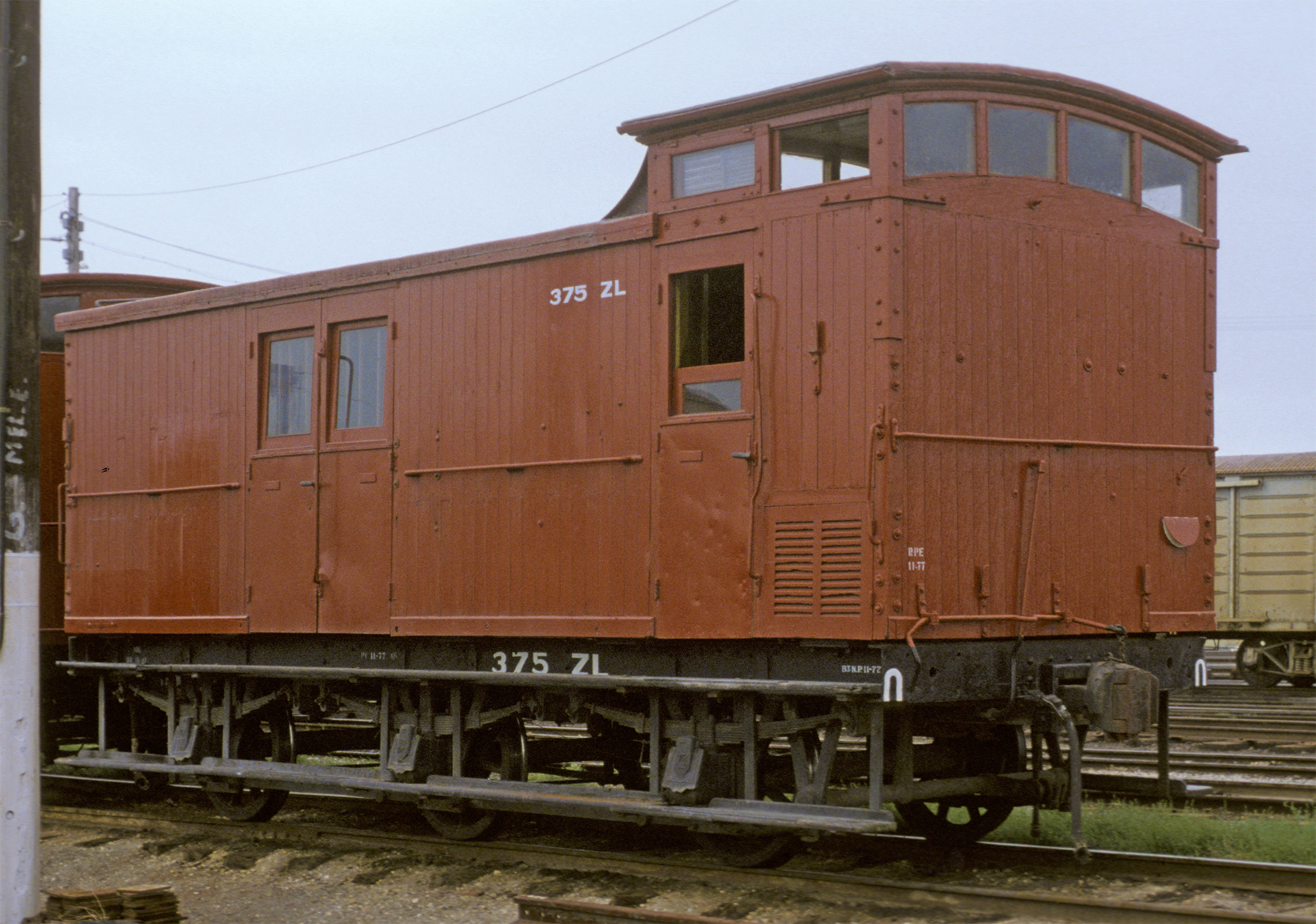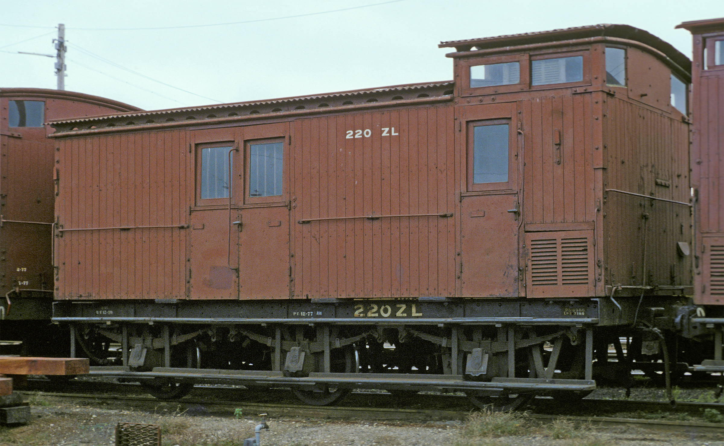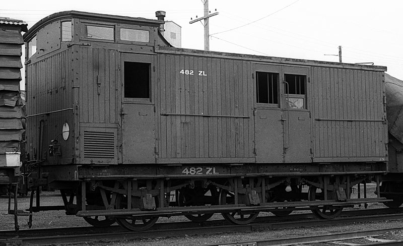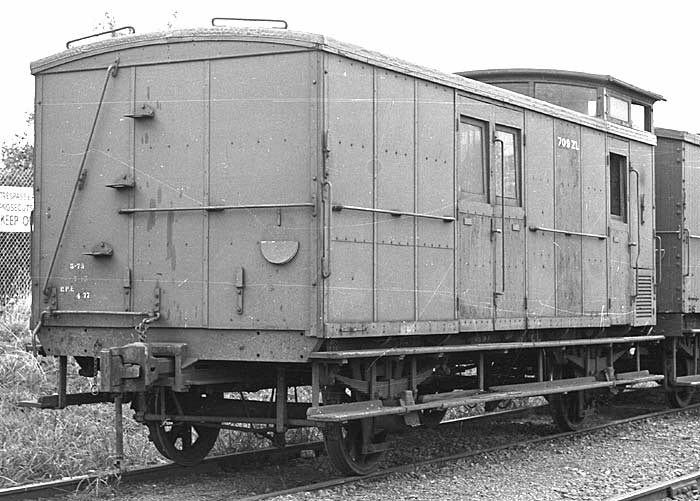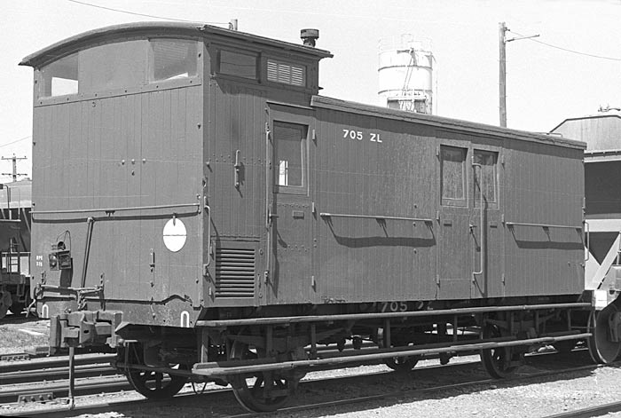ABOVE:ZL 723, photo at Dandenong April 30 1978, is a good example of the final group in close to "as built" condition. Note the lack of a gusset between the cupola and body and the flat bottomed end windows. This series were built with only 2 windows in the cupola. In latter years some of these "smooth sided" ZL's recieved planked side and/or end panels. ZL 723 was built as Z 723 in 1951 at Newport, it was converted to ZL 723 in 1960.