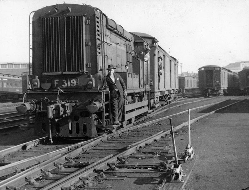 The last of VR's order, F 319 (later F 210) shunts in the Spencer St passenger yard, June 1954