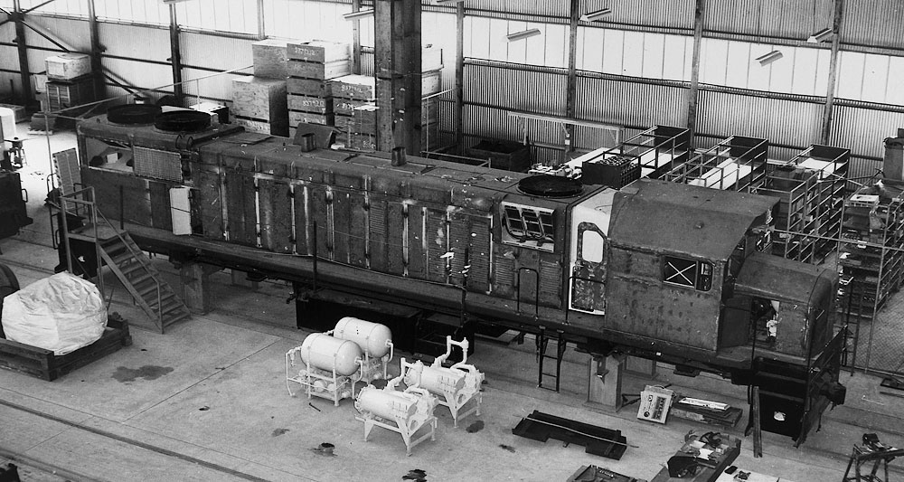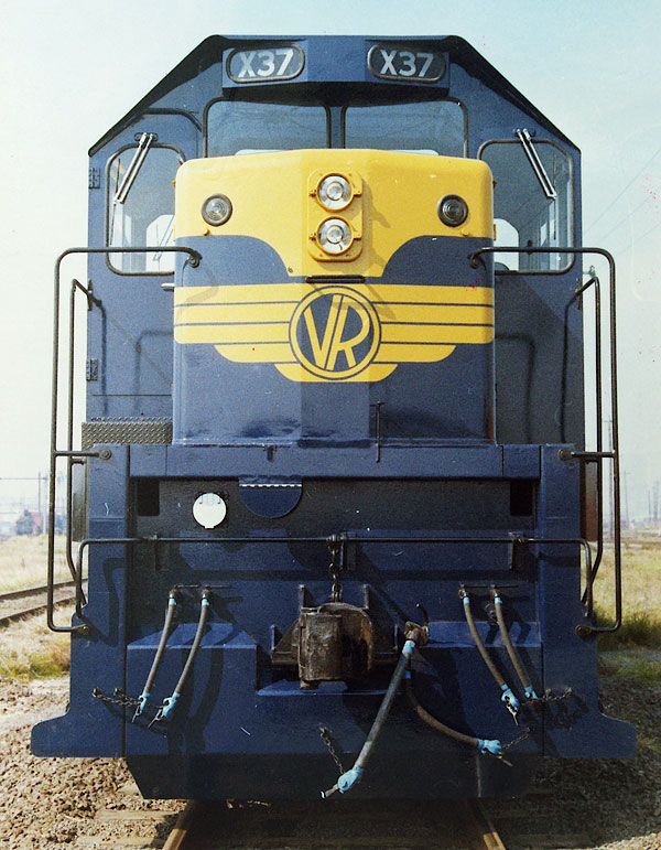 ABOVE: In 2001, X 38 underwent a major rebuild. The main feature being the addition of a turbocharger to the 16 cylinder 645 engine which increased the horsepower from 2,000 to 3,000. The horsepower increase required an enlargement of the radiator. The cab was also heavily modified to allow for one man operation. The rebuild has been an outstanding success and more X's are to be modified. X 38 has since been re-classed and renumbered to XR 550 (photo courtesy Greg Dixon)