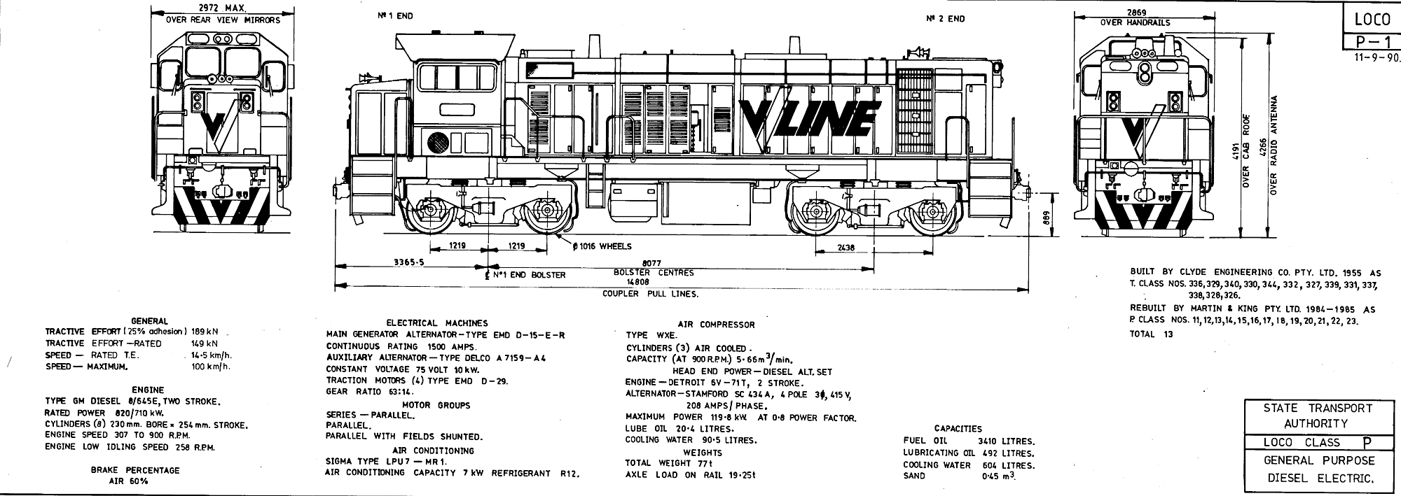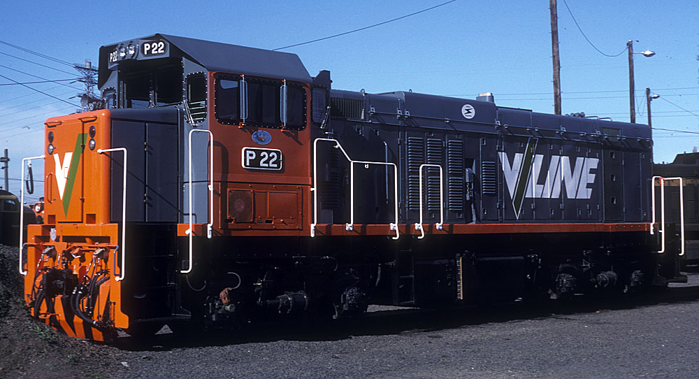 In the early 1980's Victorian passenger services were modernised, commuter services got upgraded steel cars (H cars) and to pull them 13 first series T class were extensively rebuilt. The most notable change during rebuilding was the addition of a diesel engine to provide head end power for the H cars. Other upgrades included modern air and electrical systems and an 8 cylider 645 E engine. A few years after their introduction the P's started operating in push-pull service where a P class would be at each end of the train. With privatisation the class was split up between V/Line pass. and Freight Victoria.