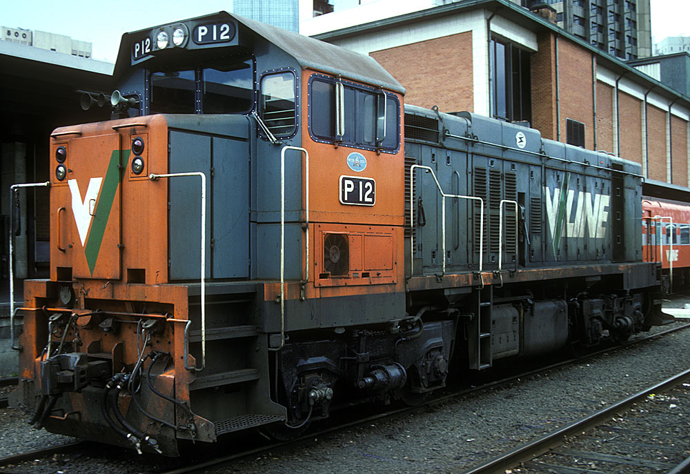 (ABOVE) P 11 at Spencer Street station, in the V/Line crimson scheme, 2006