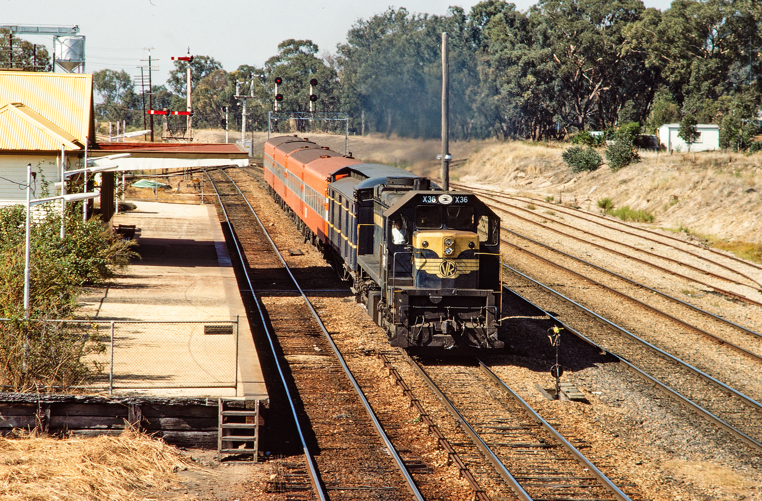 ABOVE: Warren was the fireman on the down "Intercapital Daylight" and took this photo looking back from the cab of X 31. We see an up Standard Gauge goods in the loop that the Daylight has just crossed, a down Broad Gauge goods cooling its heels in #2 road as it waits for the down Albury pass. to run through it. April 1981. Photo courtesy Warren Banfield