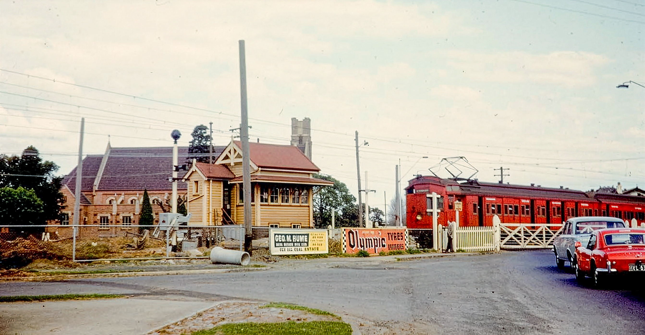ABOVE: A down Sandringham bound Harris goes over the New street crossing which ended up being the last hand gates in use anywhere in Victoria. Photo date 1985