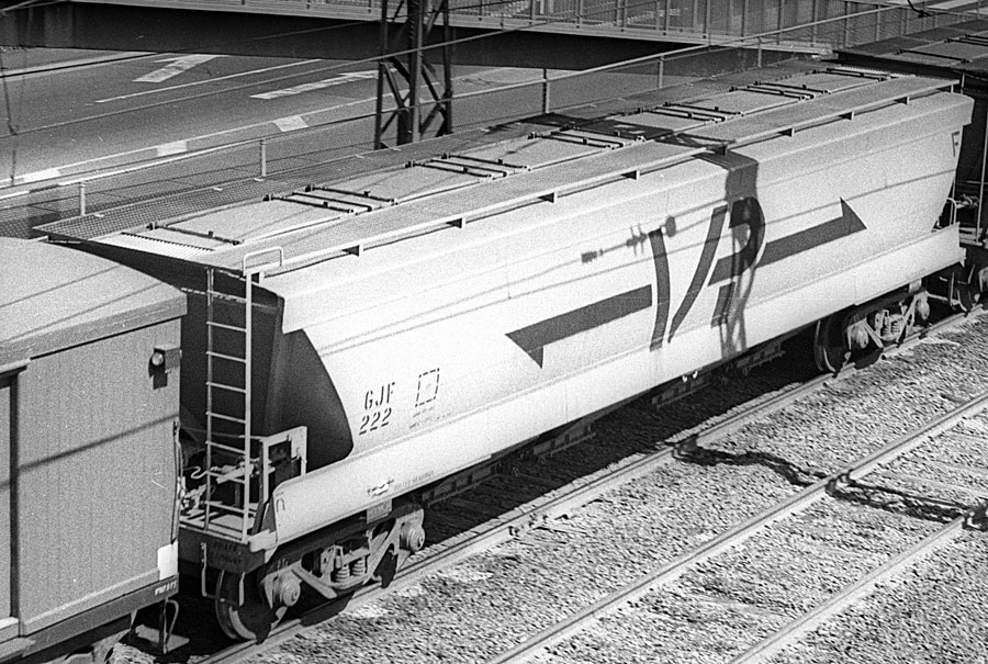 | The reason that GJX's 21 - 200 were recoded from GJX to GJF was because when built many GJX's went to NSW and simply vanished, NSW, like Victoria, were always short of wheat wagons so they put them to good use. Having brand new wagons carrying wheat for another railway was not acceptable to the VR so they removed the grade control equipment which made them unfit for bogie exchange traffic, and recoded them to GJF which meant they stayed in Victoria as they couldn't get "bogie exchanged" and earn revenue carrying wheat for the NSWGR | |||||||||||||||||||