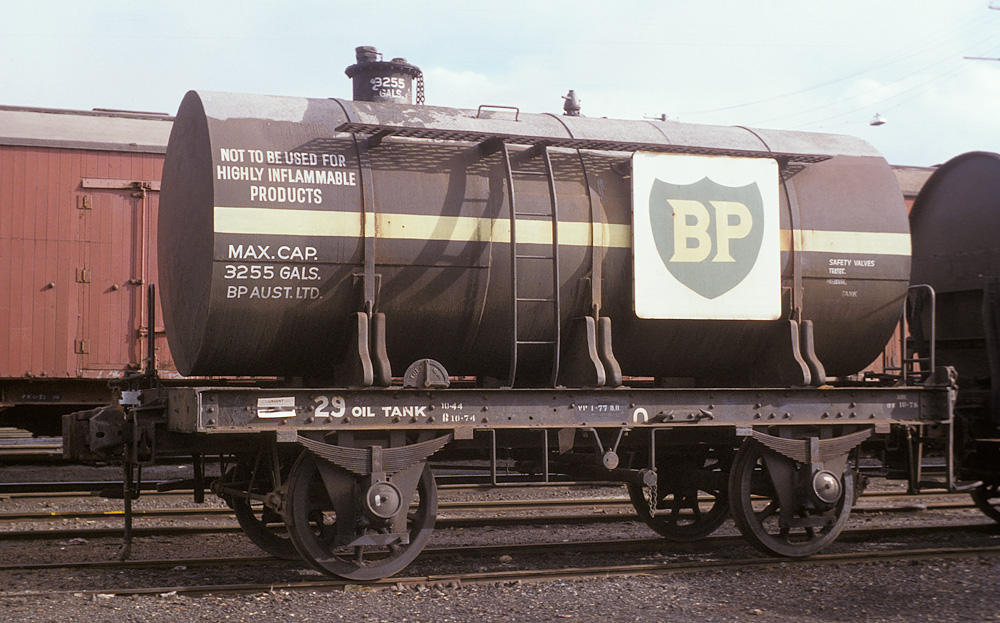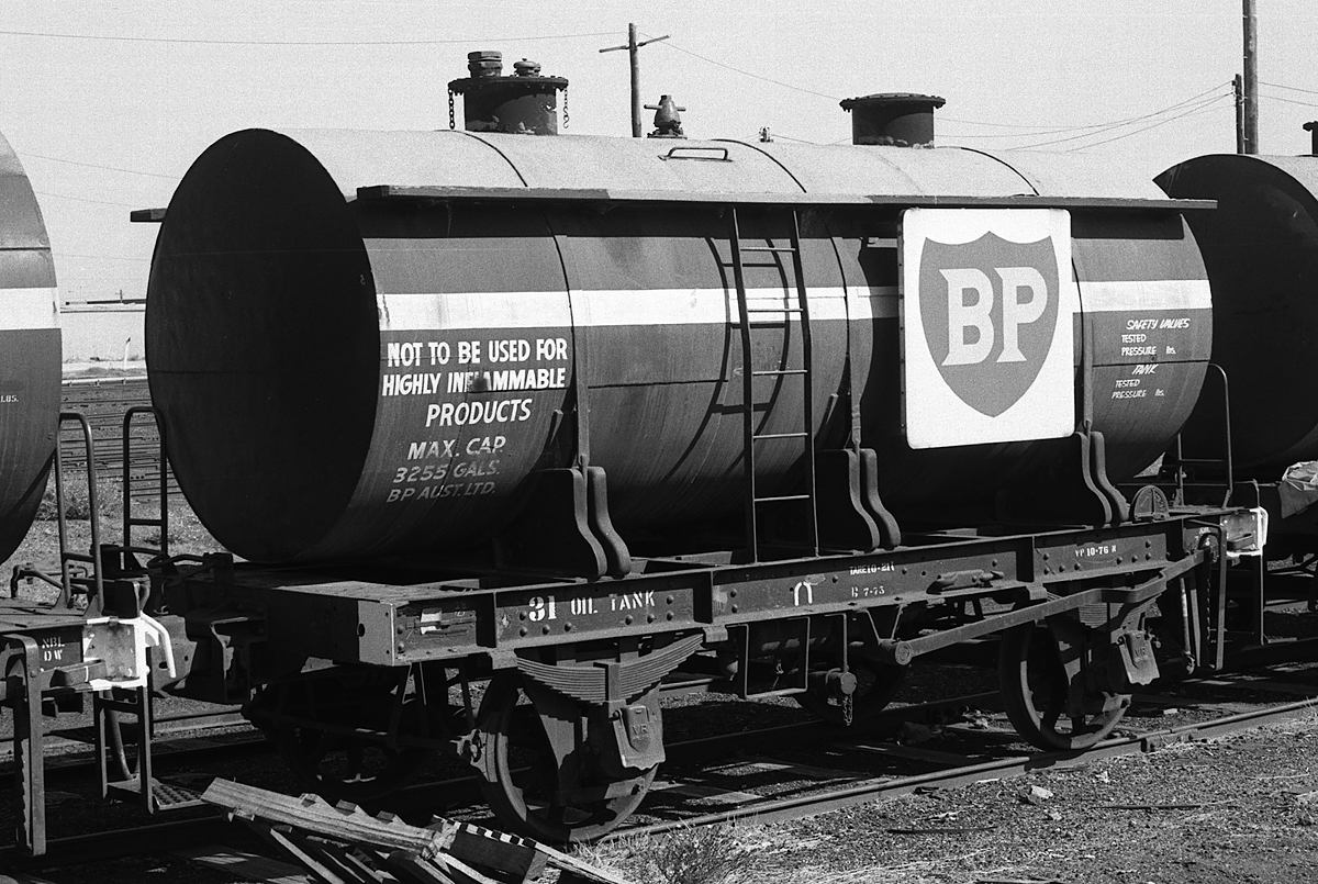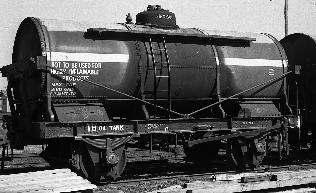 ABOVE: Oil Tank 512 was built 1959 presumably on an IZ underframe. Photo at Ballarat East 1978
