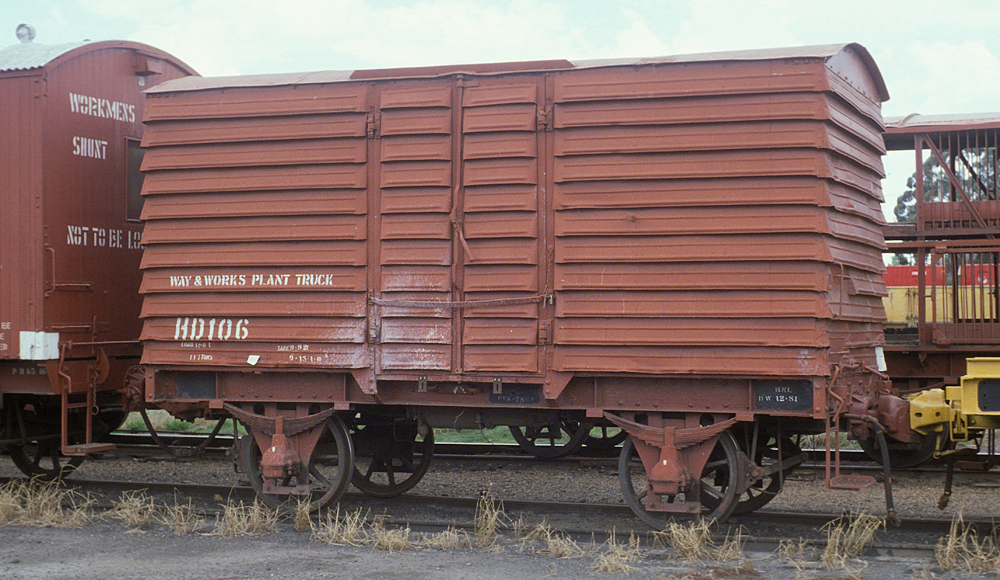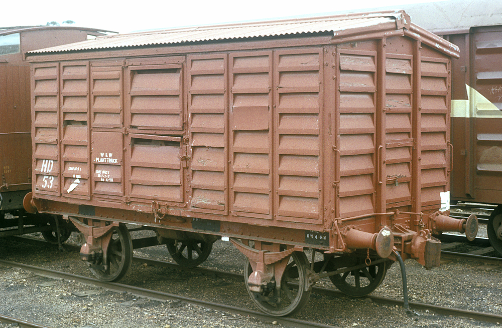 The HD class represented the most diverse and interesting class of vehicle the VR ever rostered. Almost always they were converted from old wagons ready for scrap, there were 4 wheel and bogie HD's. They were used by various railway departments (chiefly the way & works, signal construction and electrical branches) to transport material to a job site, the material was then stored in the HD. Yet other HD's were purpose built for a specialised task. Most of the HD history information comes from Peter J. Vincent's website. | |||||||||||||||