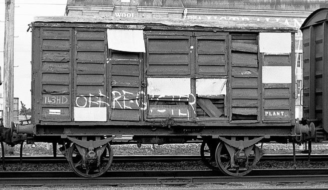 BELOW: (photo at Shepparton April 1979) Obviously the same wagon but now it is numbered 85