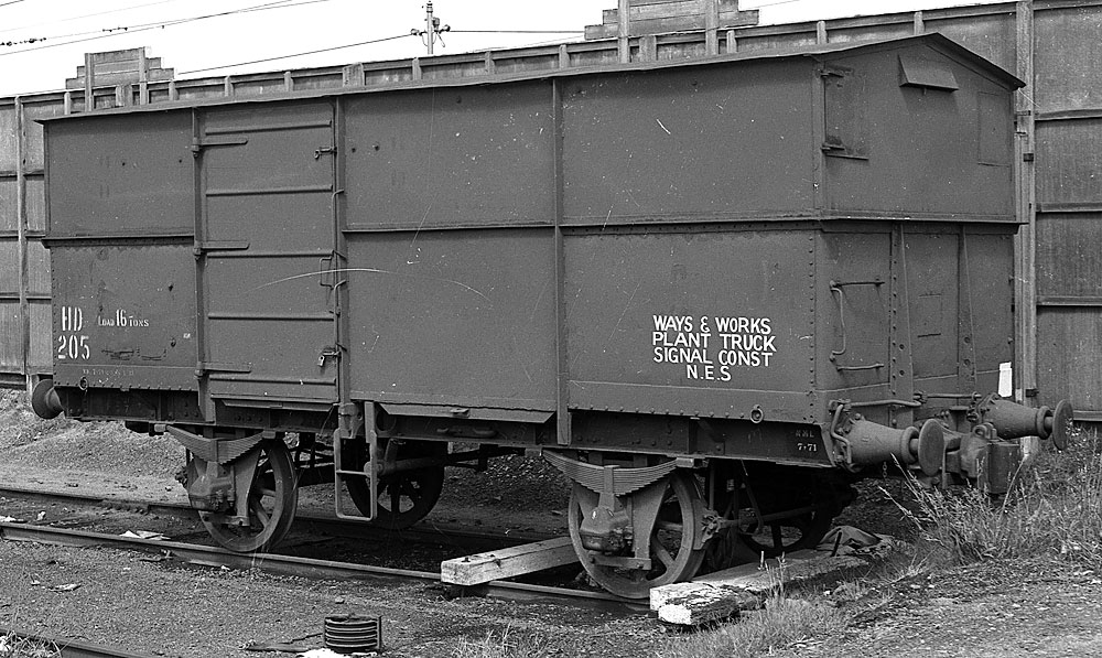 ABOVE: HD225 was part of the body of ABL 4 put onto the underframe of I 9169 in 1967. Look closely just to the right of the coupler, you can see what's left of the I wagon's vertical end supports.