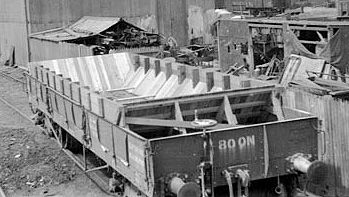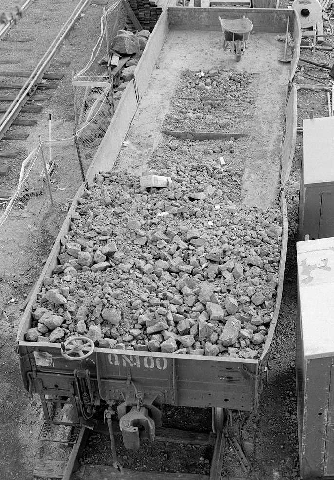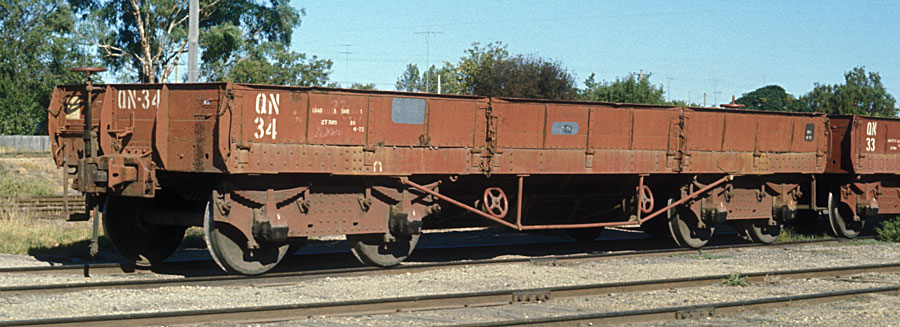 QN's were for ballasting work. The ballast dropped out of the wagon by means of a door in the centre of the floor or for shoulder ballasting the side doors were opened and the ballast was manually shovelled out as shown in the photo at the bottom of the page.The wheels on the side of the wagon opened and closed the bottom doors.