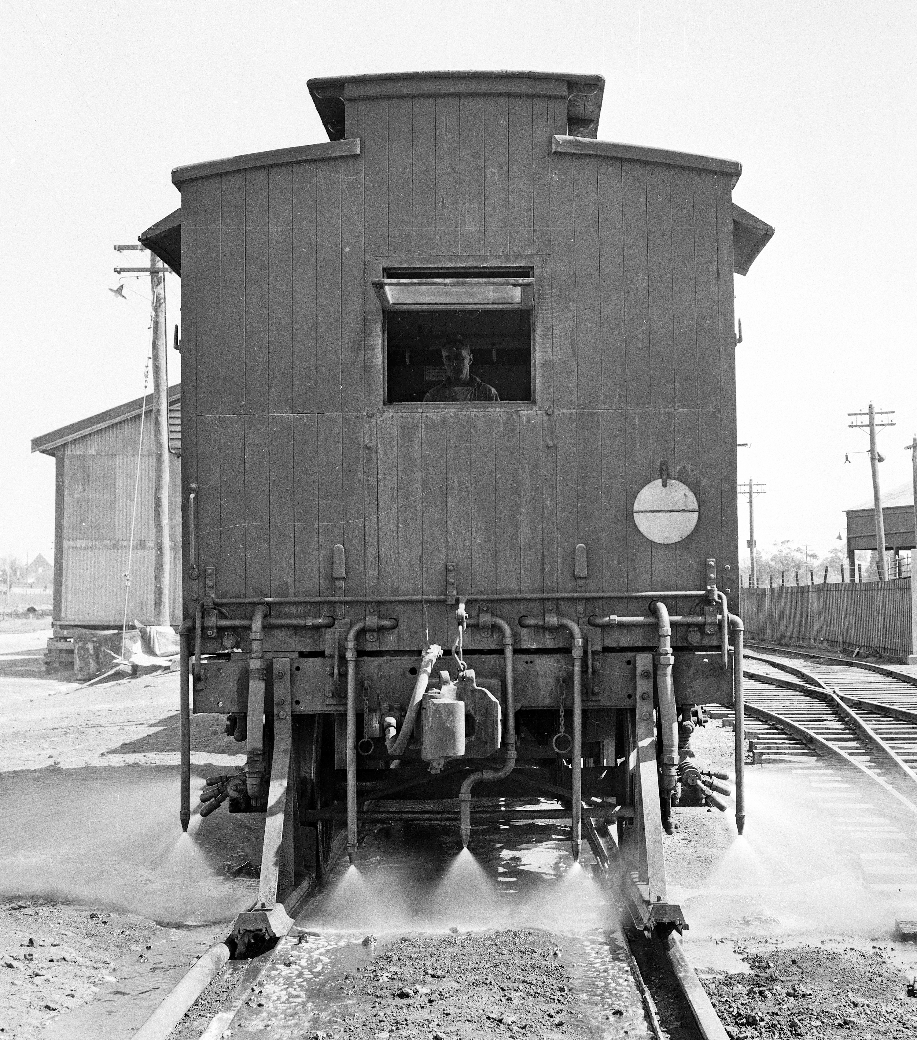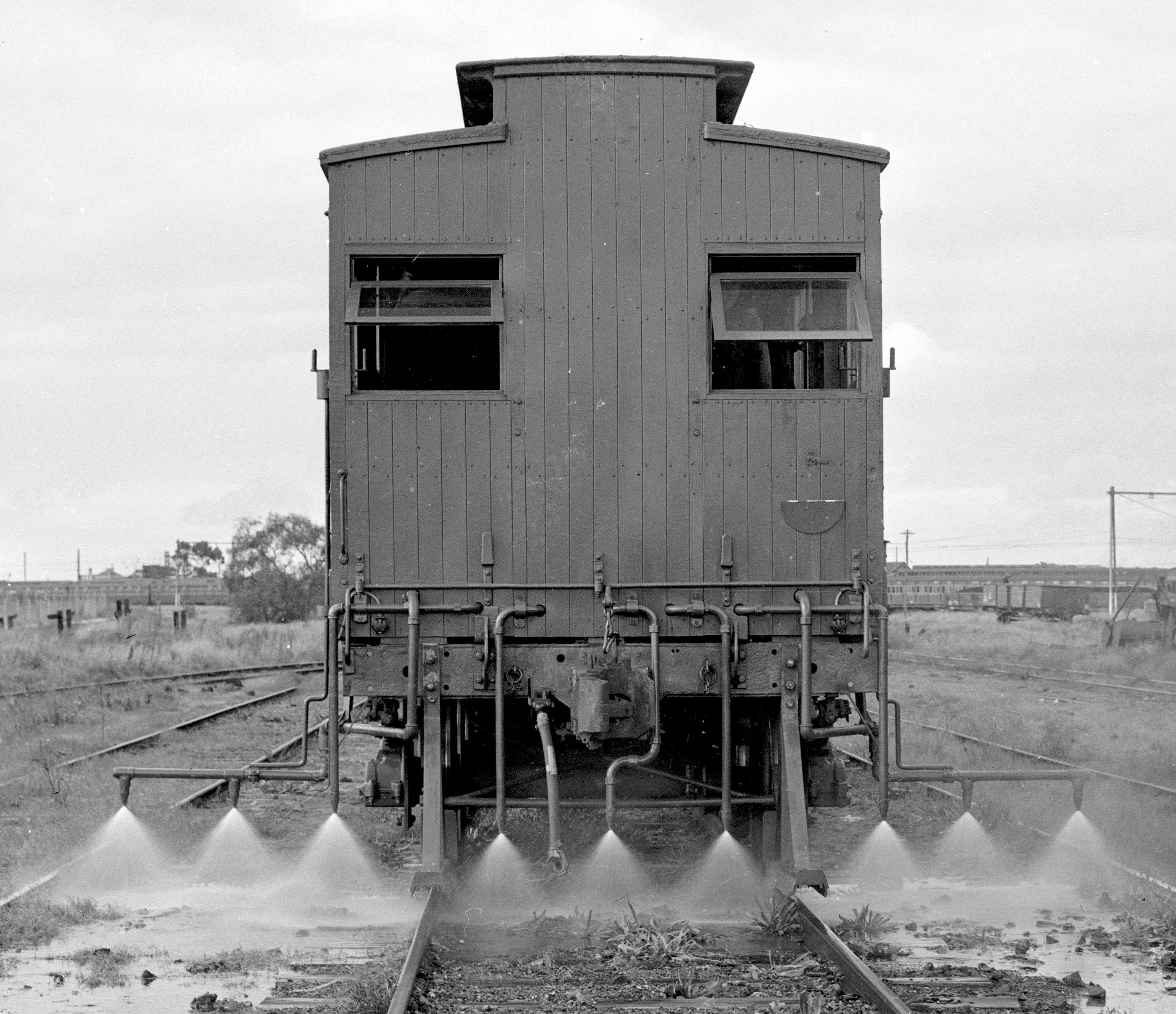 BELOW: WZ 1 in action spraying the tracks near Princes Bridge/Flinders St, 1978 Photo courtesy Peter J Vincent.