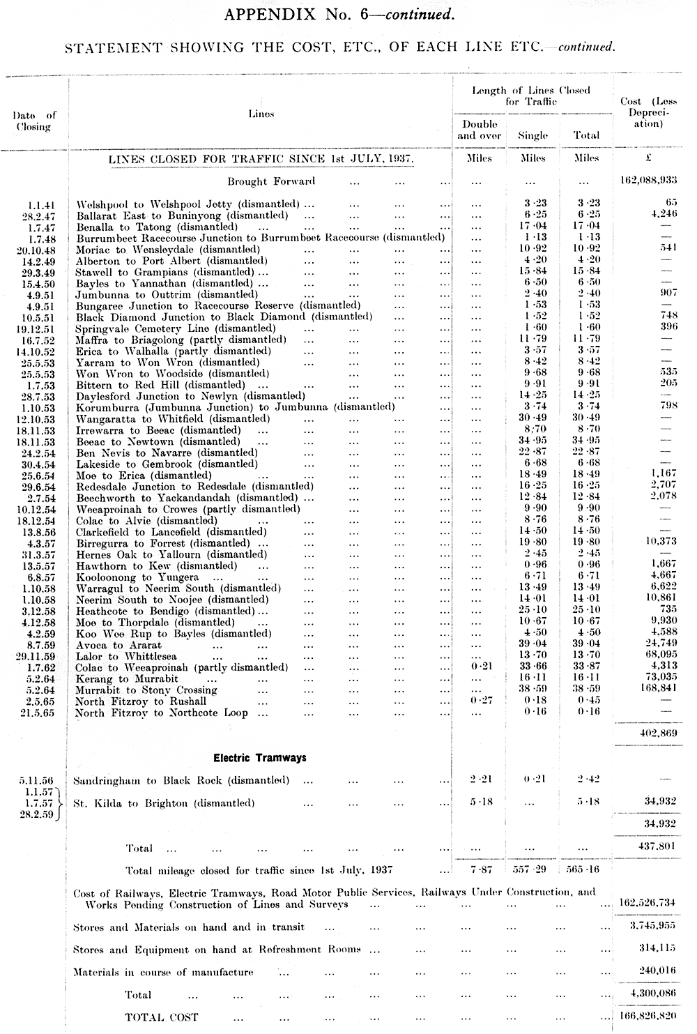 | Dec. 8 | Timboon Junction to Timboon line closed | . | |